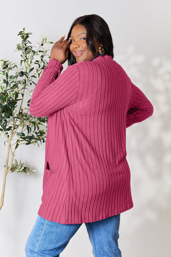 Basic Bae Full Size Ribbed Open Front Cardigan with Pockets
