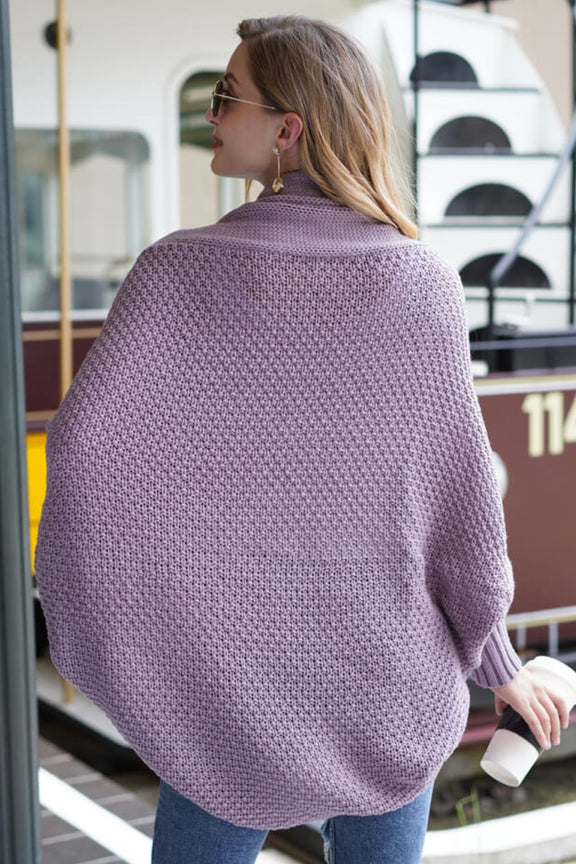 Dolman Sleeve Open Front Ribbed Trim Longline Cardigan