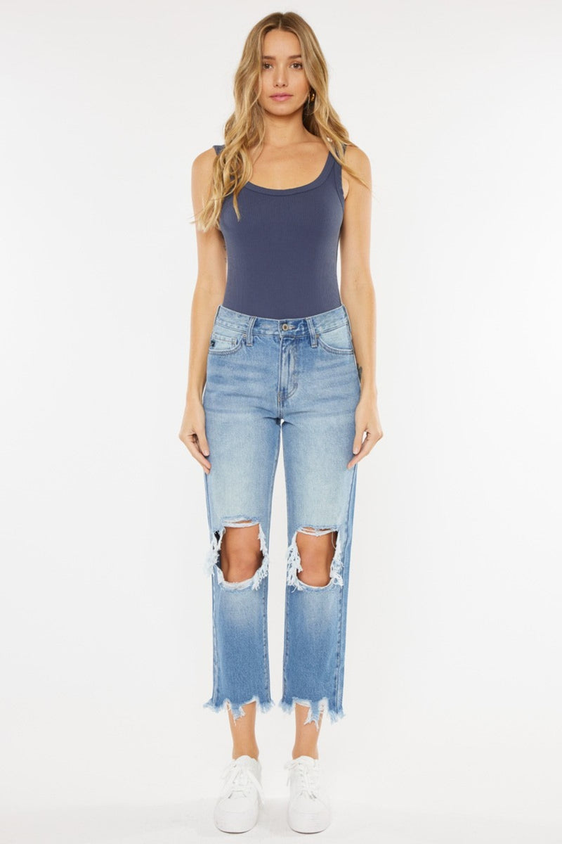 Kancan High Waist Chewed Up Straight Mom Jeans