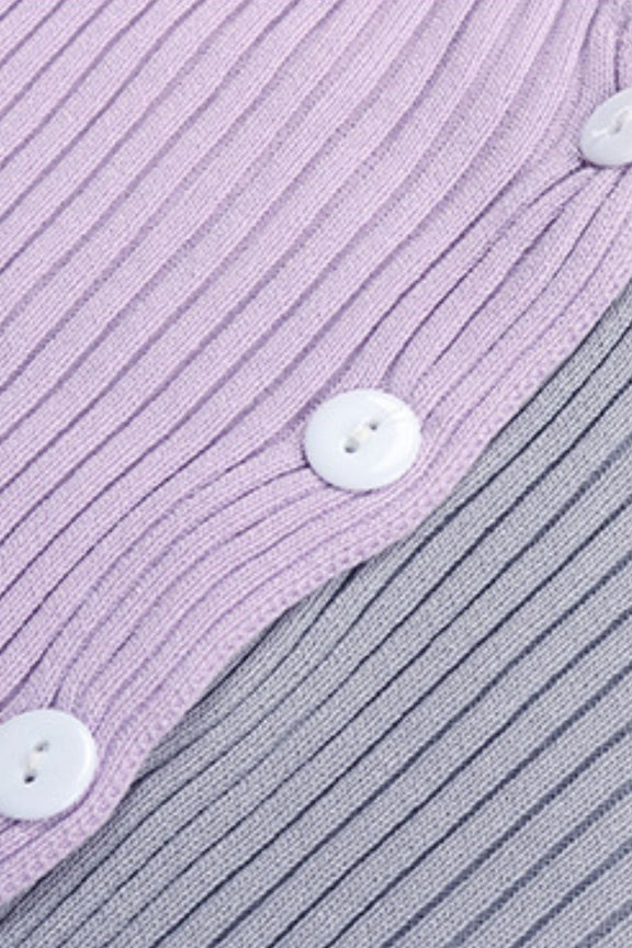 Perfee Contrast Button Up Long Sleeve Cardigan